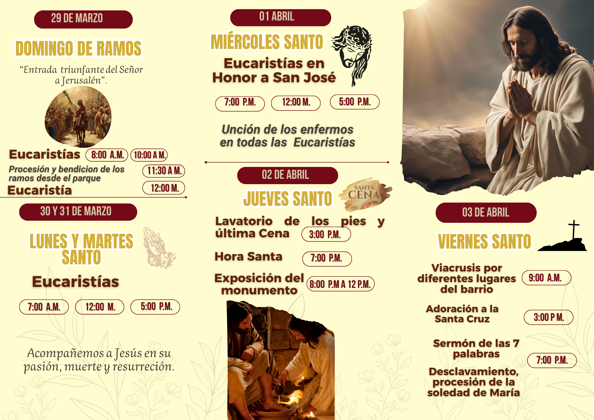 CELEBRACIÓN SEMANA SANTA 2026 20 de Marzo de 2026 Like 0 Dislike 0 Otros artículosCELEBRACIÓN SOLEMNIDAD DE SAN JOSÉ20 de Marzo de 2026 ... 📖LECTURAS 30 DE NOVIEMBRE 2025📖3 de Septiembre de 2025